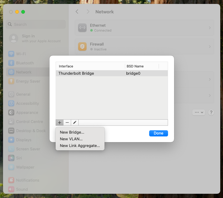 - Go to System Settings > Network, then click ...v and select Manage Virtual Interfaces from the menu that displays.