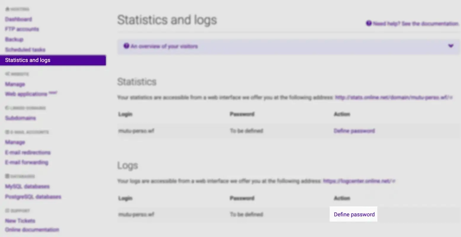 - Go to the Logs section and click Define password. If you want to reset your password, click Reset password.