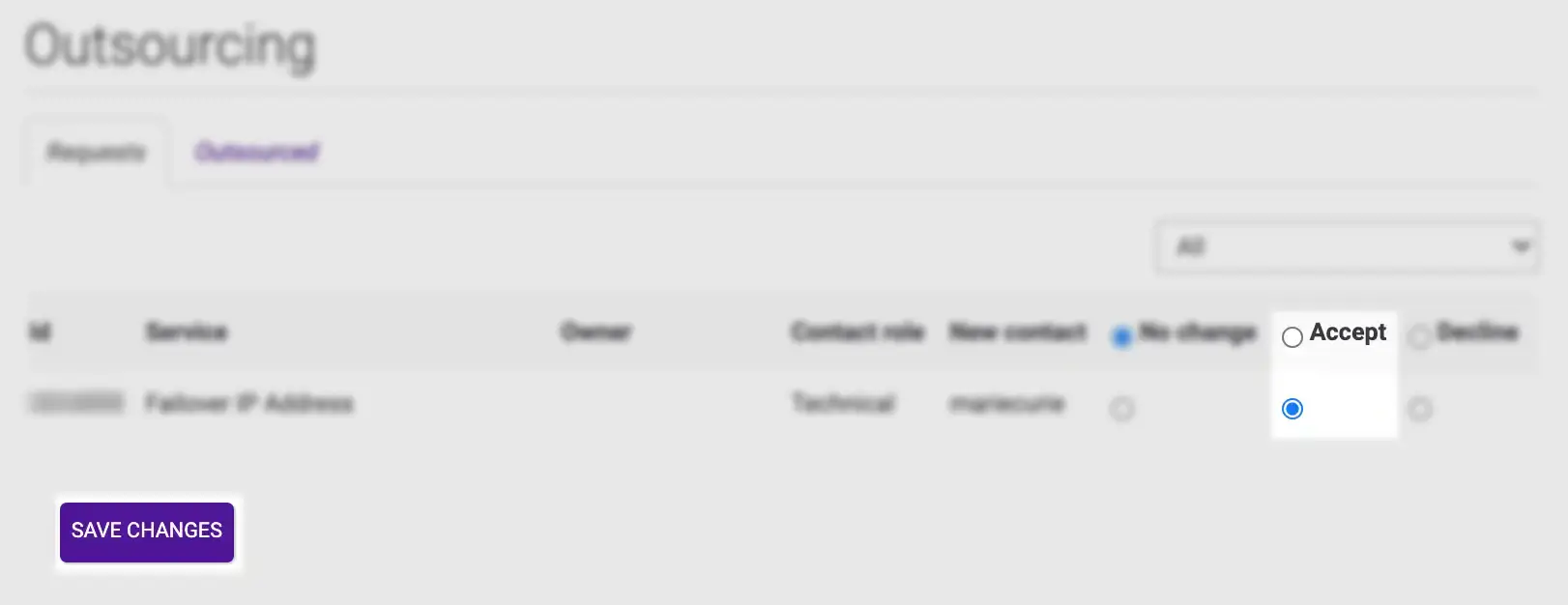 - Check the Accept box for the service(s) you agree to take over.