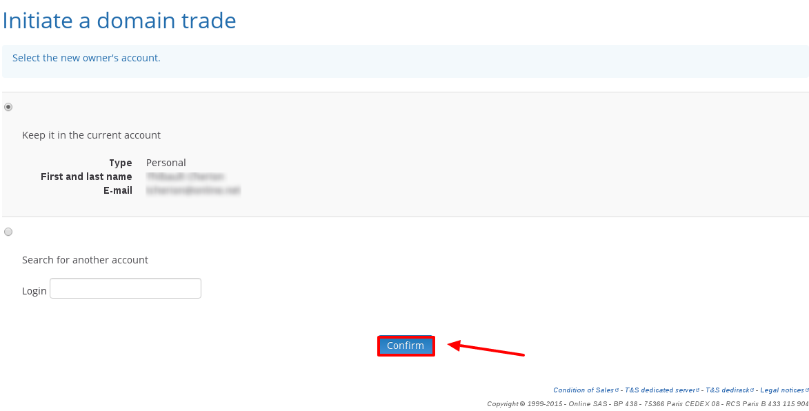 - Select the identifier of the new owner, searching for it via the account identifier if necessary, and click Confirm.