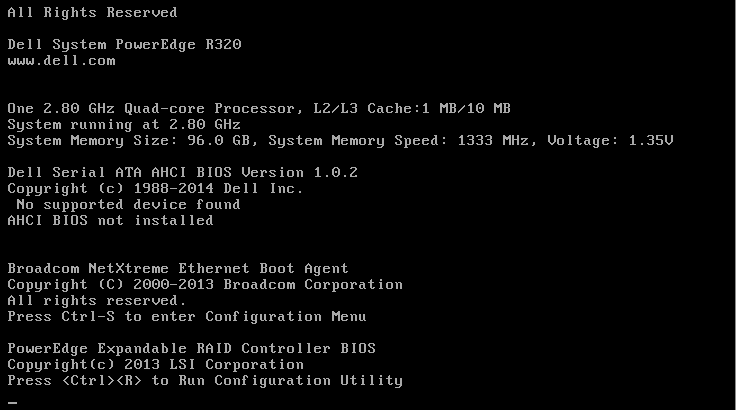 - Press CTRL + C during the boot process to enter the RAID configuration utility: