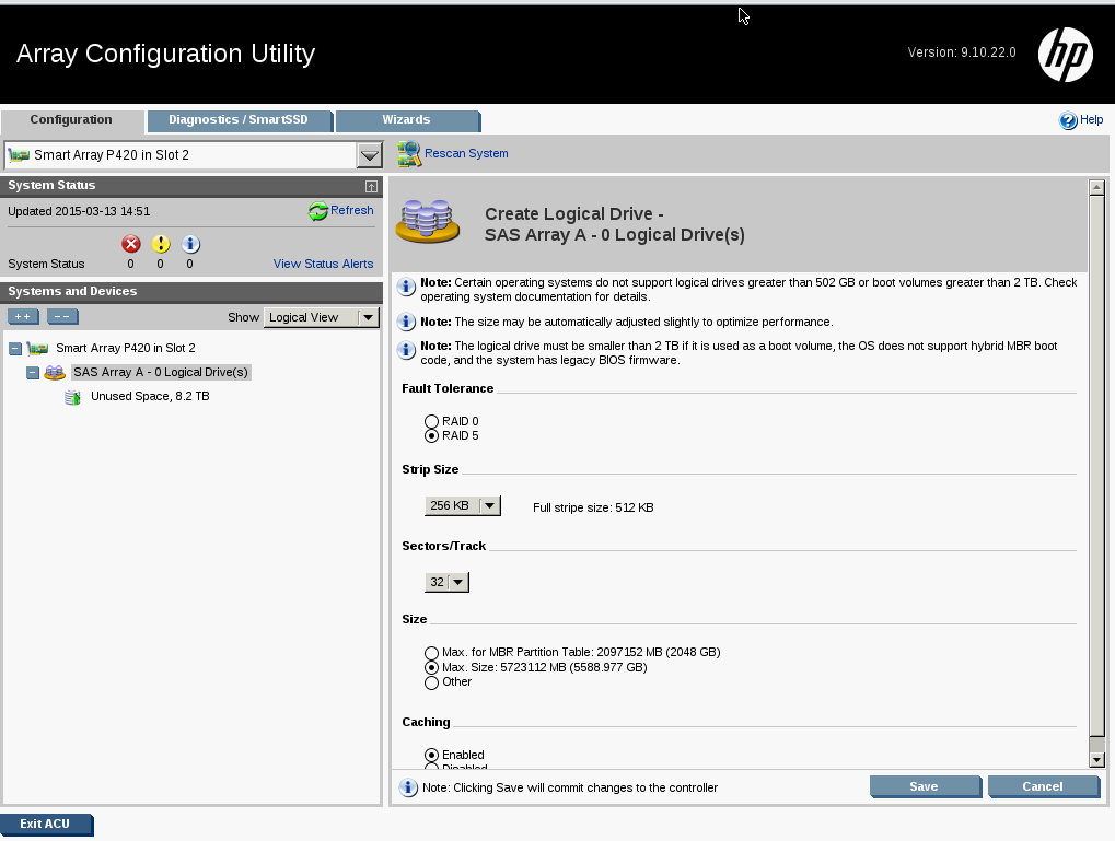 Select the parameters for the array and click Save to write the changes to the disks: