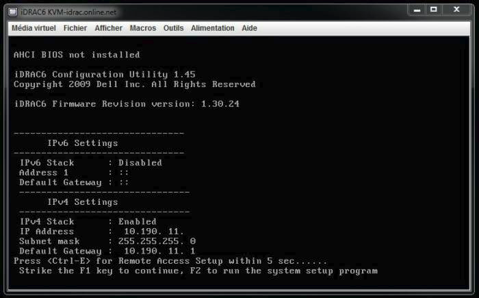 Click in the KVM window, then press F2. This allows you to enter the BIOS of your server and make configuration changes.