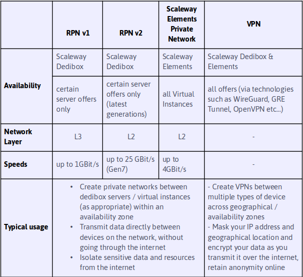 Scaleway provides a range of options for secure networking between Dedibox servers, Scaleway Instances, or both. Explore our documentation to learn more about Dedibox RPNs, Scaleway Private Networks, and VPN solutions.