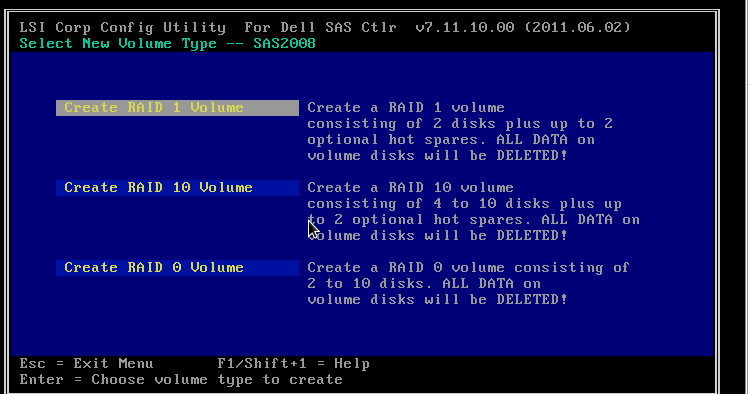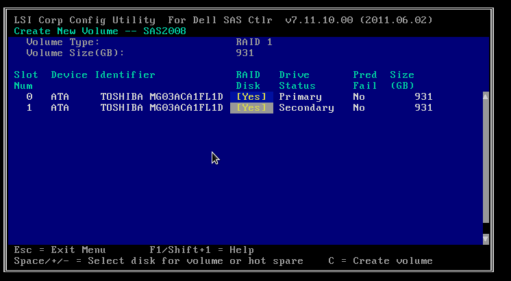 Press CTRL + C during the boot process to enter the RAID configuration utility: