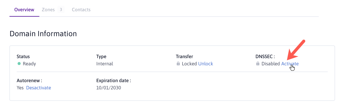 This page shows you how to enable DNSSEC for your Domains and DNS internal domains only. You can also enable DNSSEC using the API.