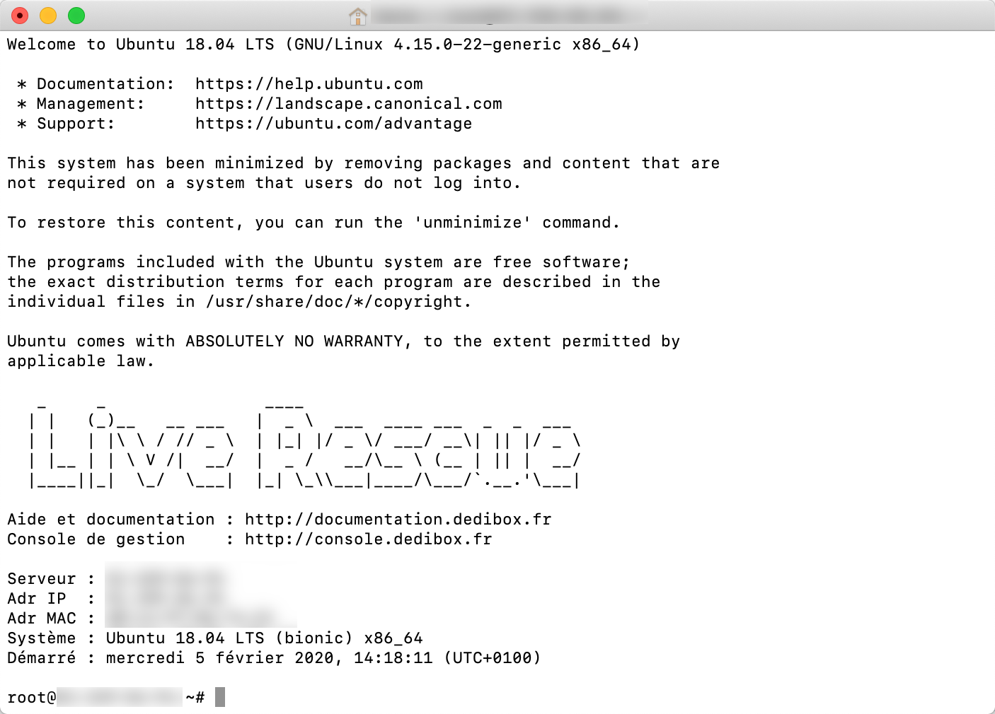 After the server has rebooted, use a terminal application to log into the server via SSH using the credentials provided in your console: