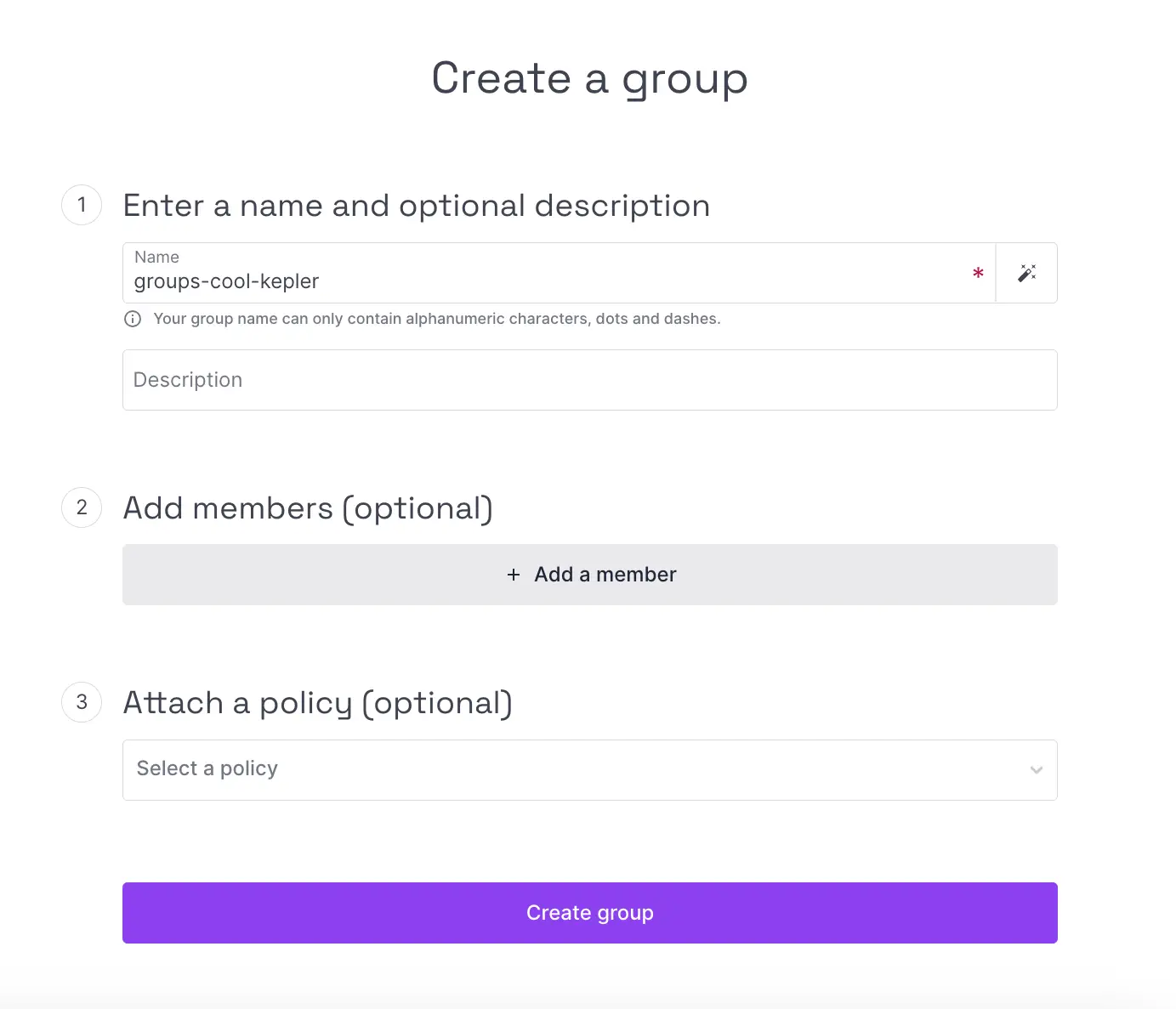 - Enter a name for the group, or use the auto-generated name suggested for you,