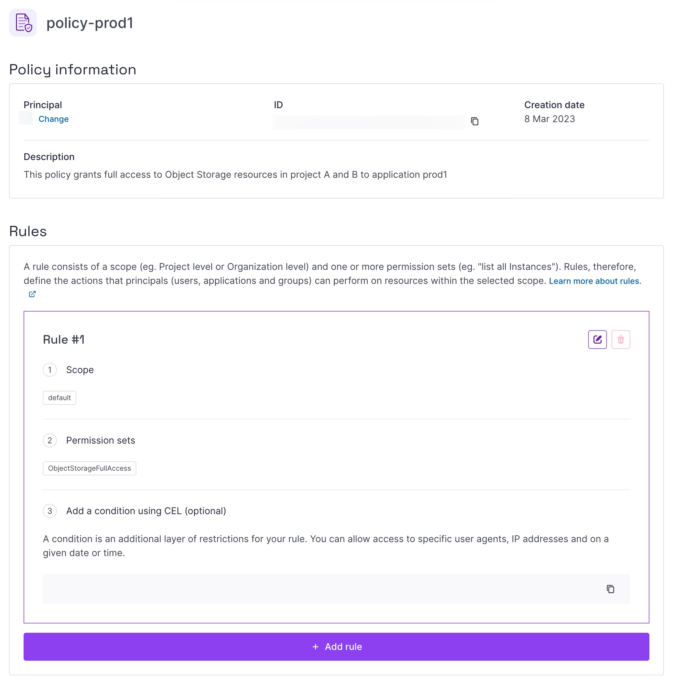 - Edit the rule as required. You can edit the scope, permission sets and conditions.