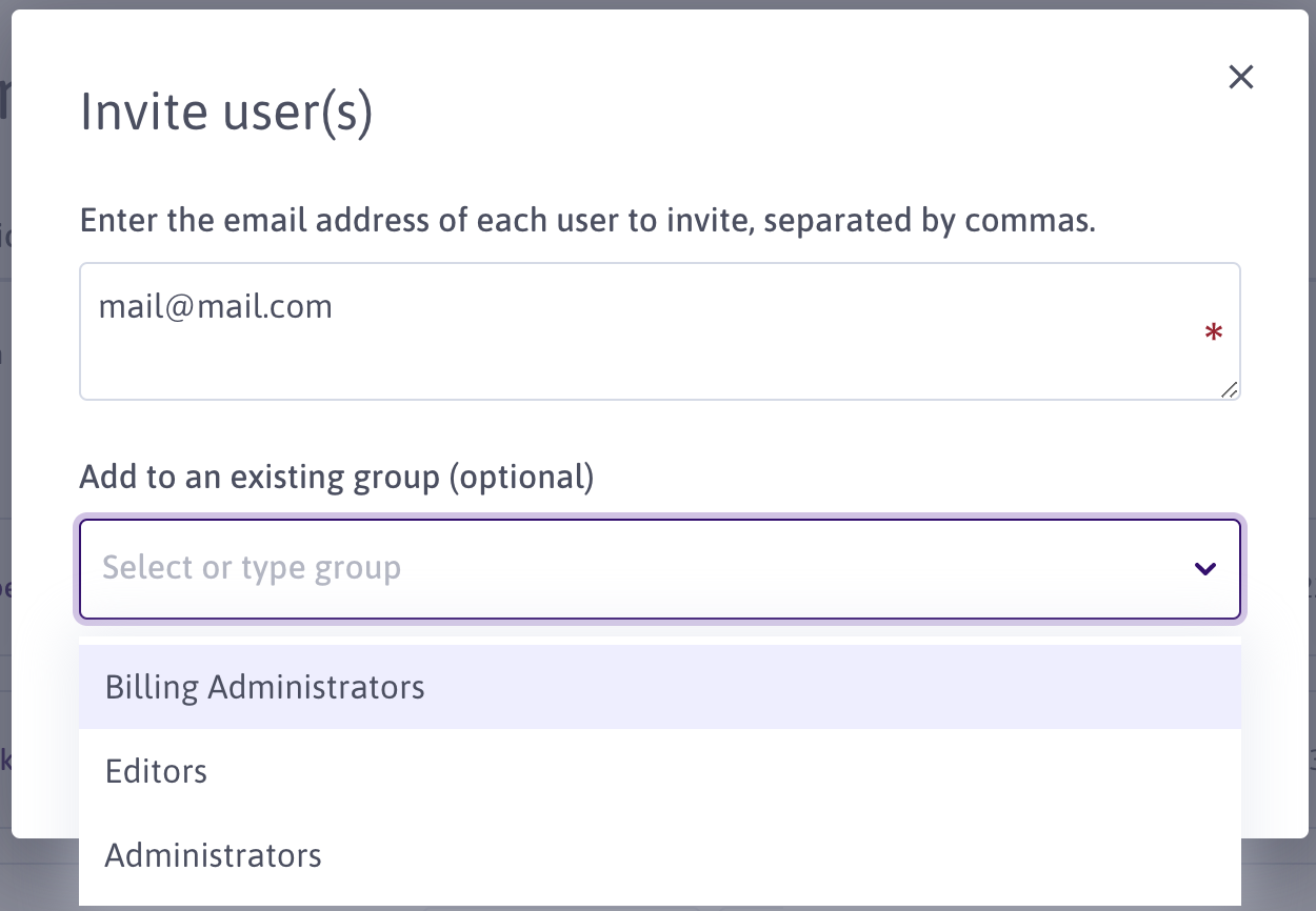 Create a group from the Groups tab, preferably with a name related to the corresponding role (e.g. “Administrators”, “Editors” or “Billing Administrators”).