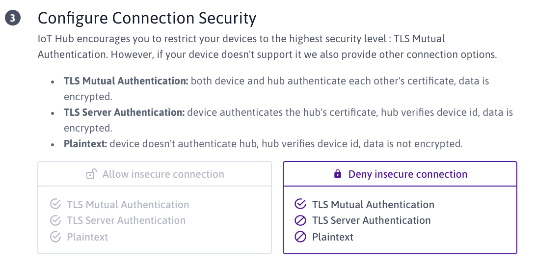 Choose a security setting for your device. You can either deny or allow insecure connections.