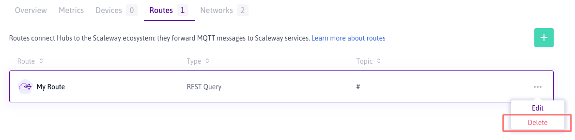 Click the more icon icon next to the route you want to delete, and select Delete from the drop-down menu.