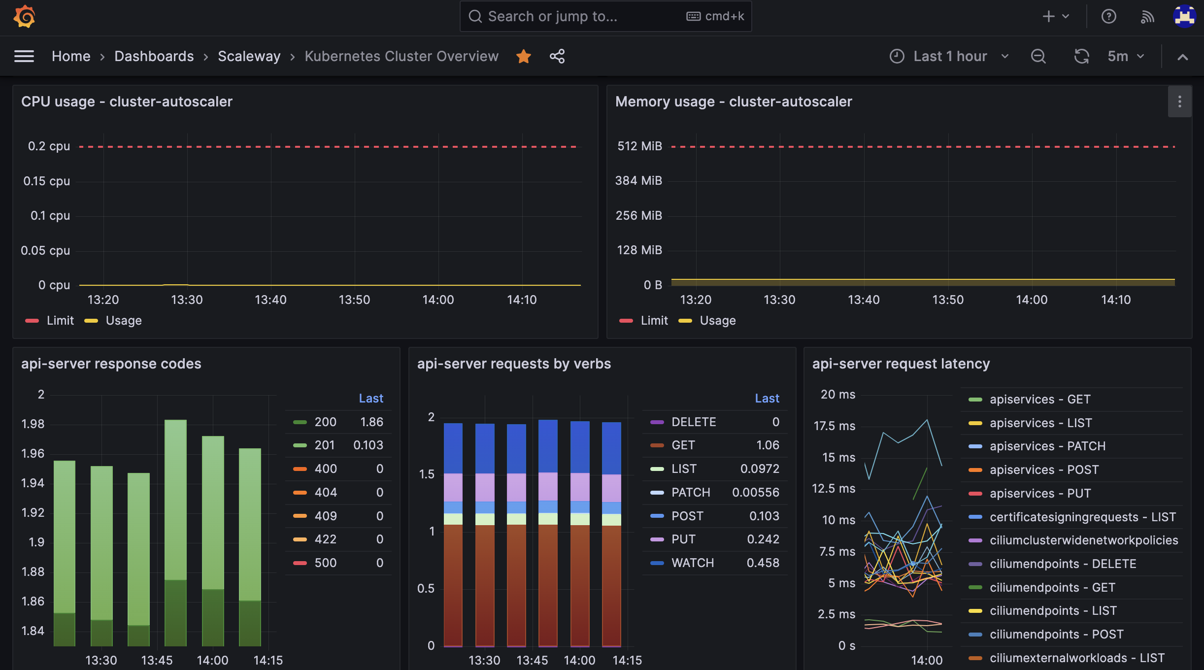 - Achieve a better understanding of your infrastructure by analyzing data on your API server, system applications and up/down scaling behavior