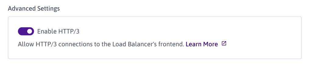 To create a frontend that allows HTTP/3 connections, follow the instructions for adding a frontend to your Load Balancer or editing an existing frontend