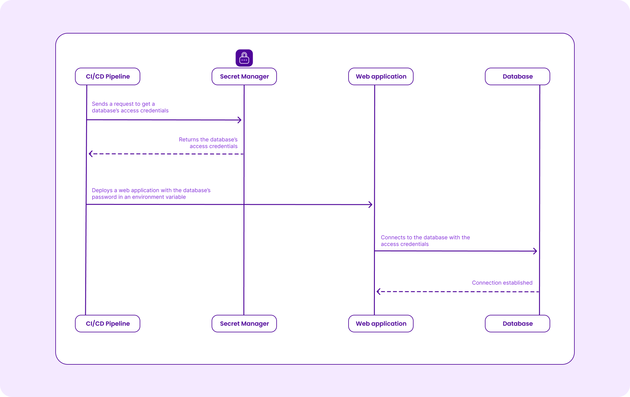 Scaleway's Secret Manager can be managed using APIs and the Scaleway CLI, which allow authorized applications or services to retrieve secrets securely. This enables you to automate a deployment by fetching your passwords stored on Secret Manager through the API, and storing them in your environment variables, which will then be used by your application.
