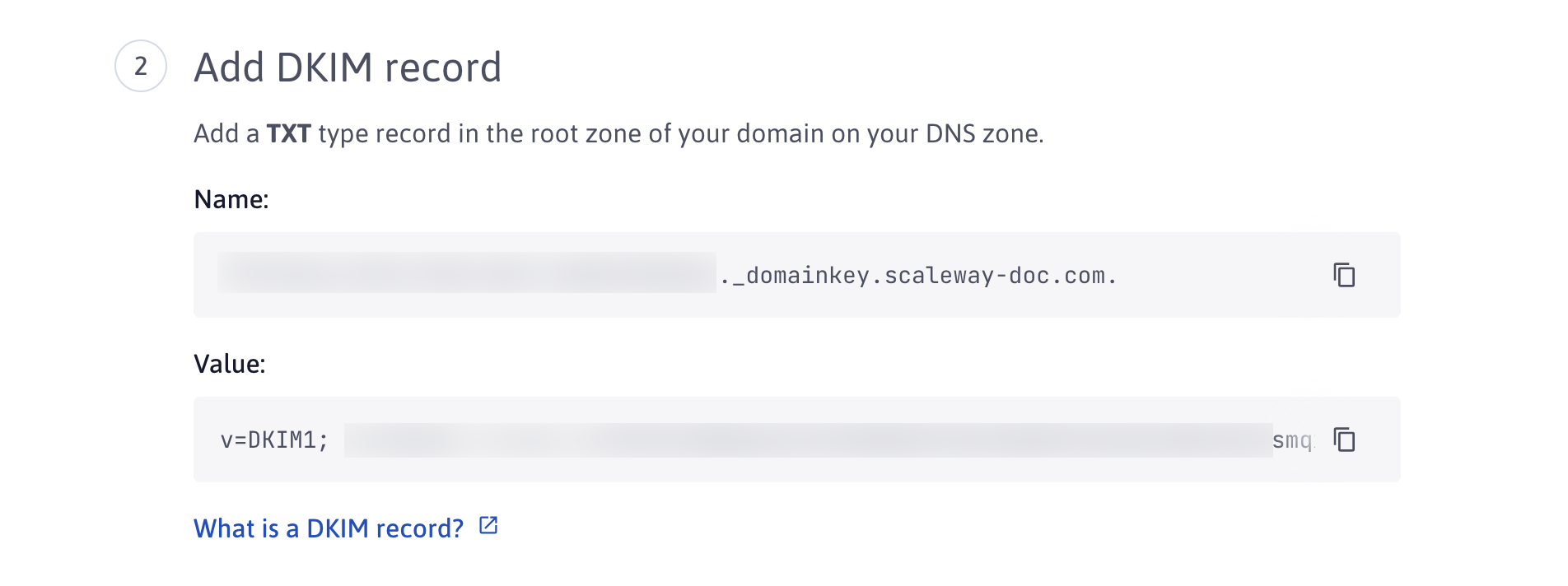 After you have configured your domain with Transactional Email, you are prompted to verify your domain by adding SPF, DKIM and MX records. You can choose to do so right after you have validated your domain, or at a later time.