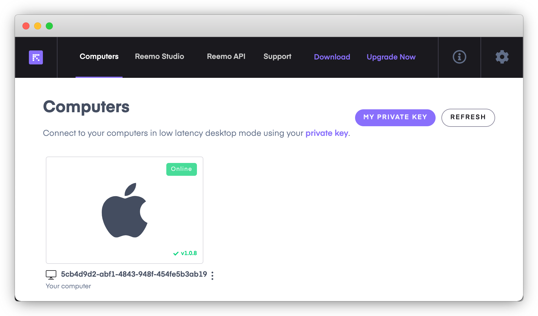 - Click My private key to display your private key which you need during the installation of the Reemo client on your Mac mini. The private key is also known as personal key when Reemo is used freely for personal use.