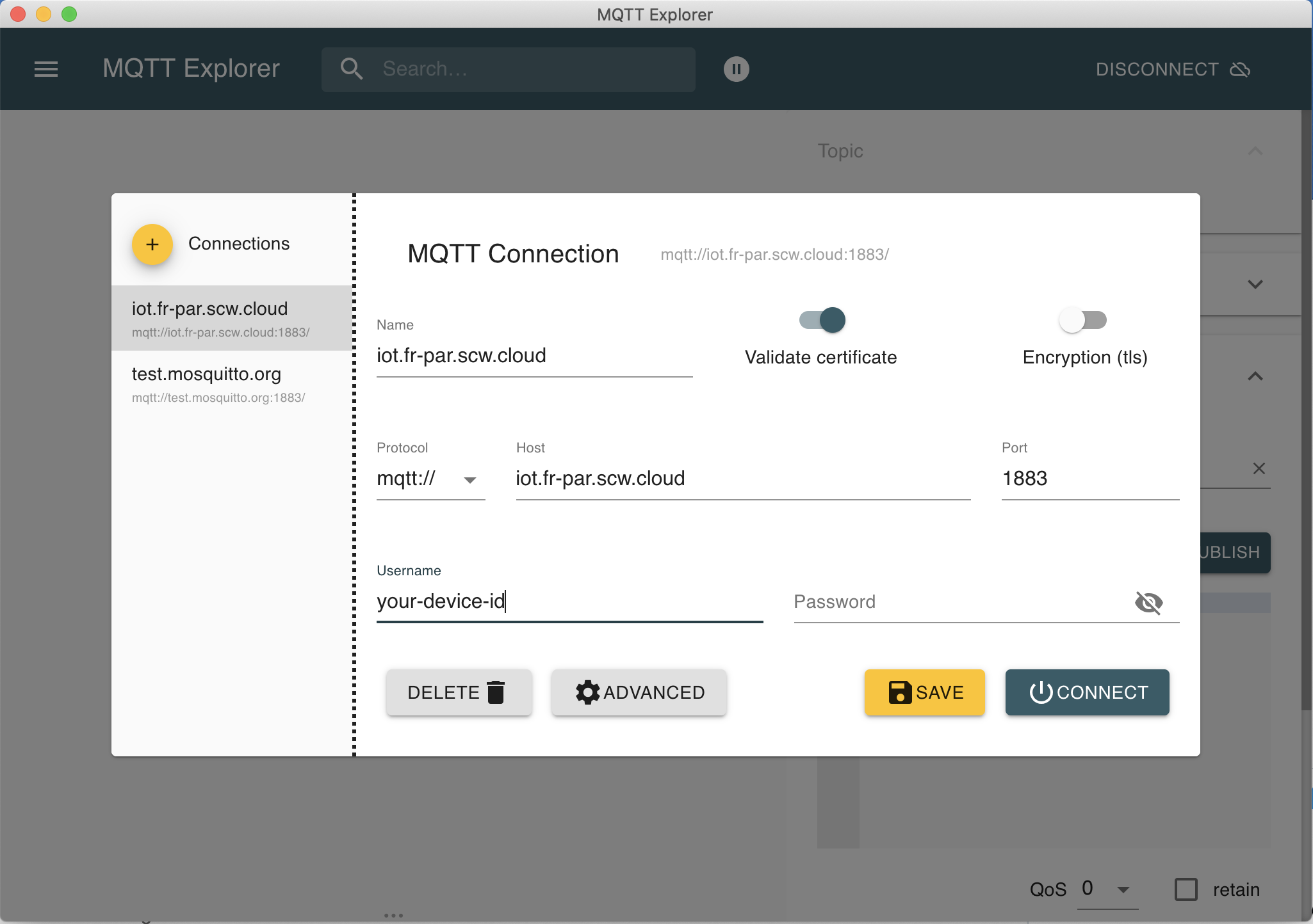 Connecting MQTT Explorer to Scaleway IoT Hub