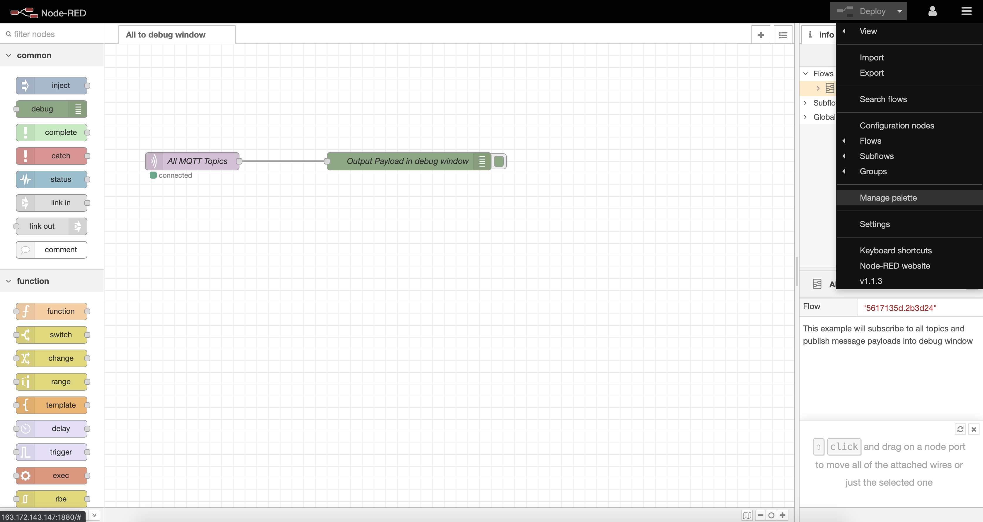 In the following steps, we deploy a Node-RED application using the IoT-Hub Kickstart feature and use it for flow programming.