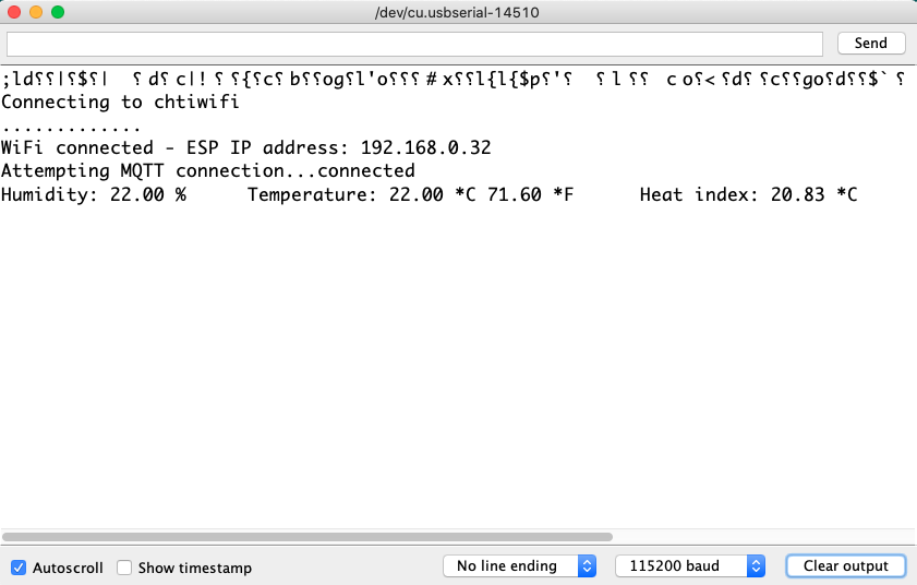 Transfer the Arduino Sketch to the NodeMCU device and open the Serial Monitor.