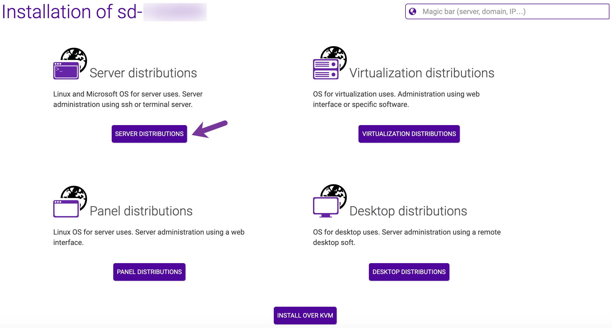 - Access the server page of your Dedibox on the console and click Install to begin installation via KVM over IP.