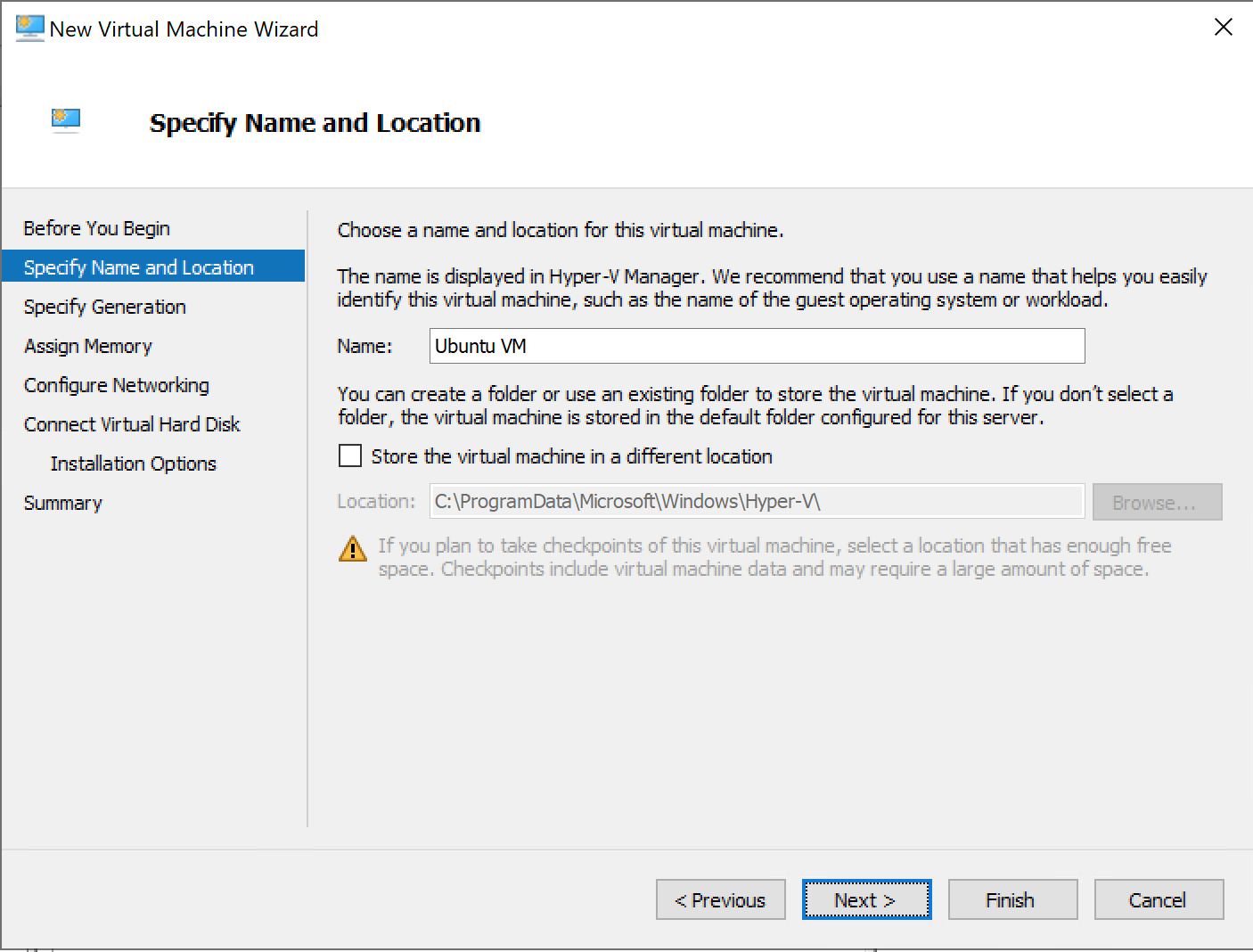 - Choose the generation of the virtual machine. You can either use the older Generation 1 for compatibility with older versions of Hyper-V, or the newer Generation 2. For more information about the different generations, refer to the official documentation.