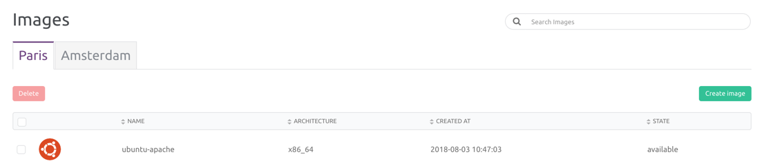 packer build scaleway.json scaleway output will be in this color. ==> scaleway: Prevalidating image name: ubuntu-apache ==> scaleway: Prevalidating snapshot name: ubuntu-apache-snapshot ==> scaleway: Using existing SSH private key ==> scaleway: Creating server... ==> scaleway: Waiting for server to become active... ==> scaleway: Using ssh communicator to connect: 51.15.234.151 ==> scaleway: Waiting for SSH to become available... ==> scaleway: Connected to SSH! ==> scaleway: Provisioning with shell script: /tmp/packer-shell591856108 ==> scaleway: Shutting down server... ==> scaleway: Creating snapshot: ubuntu-apache-snapshot ==> scaleway: Creating image: ubuntu-apache ==> scaleway: Destroying server... Build 'scaleway' finished. ==> Builds finished. The artifacts of successful builds are: --> scaleway: An image was created: 'ubuntu-apache' (ID: e6e764cf-7f46-4c13-b251-a9e47367e284) in zone 'fr-par-1' based on snapshot 'ubuntu-apache-snapshot' (ID: 7abb7315-fae6-4317-9389-8ecf3c5e8a7b)The newly created image will appear in the image list in your account: