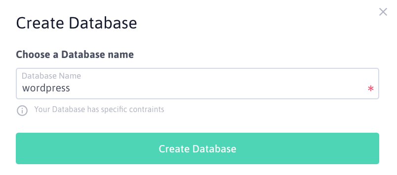 wordpress) and confirm by clicking on Create Database: