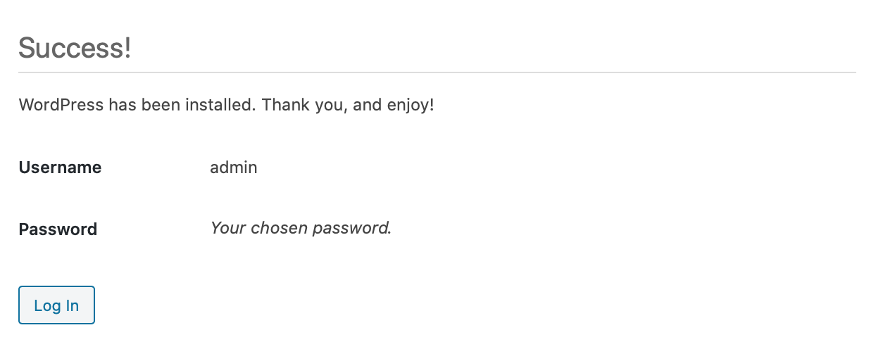 - You can now log in to your blog and write your first articles, or configure the look and feel by installing additional themes and modules.