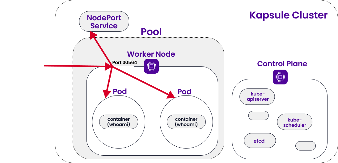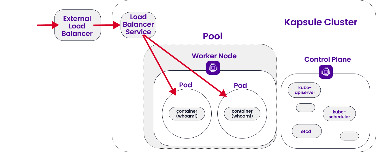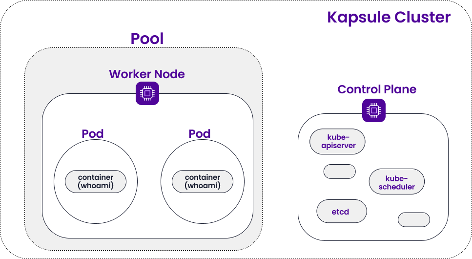 In our previous tutorials, we created a Kubernetes Kapsule and deployed the containerized whoami application to it. This is what our cluster looked like at the end of the last tutorial: