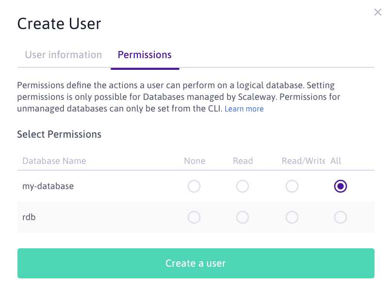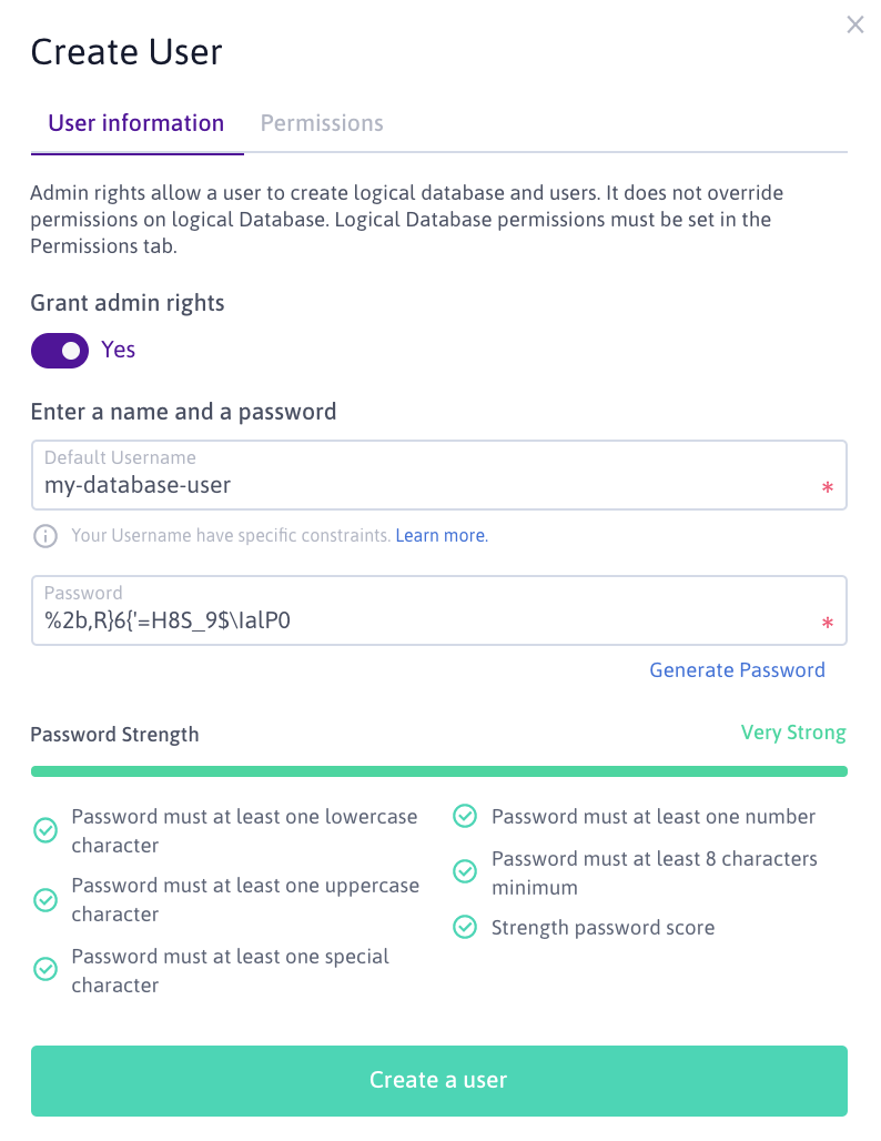 - Click the User Information tab and enter the credentials for the new user. Confirm by clicking on Create a user:
