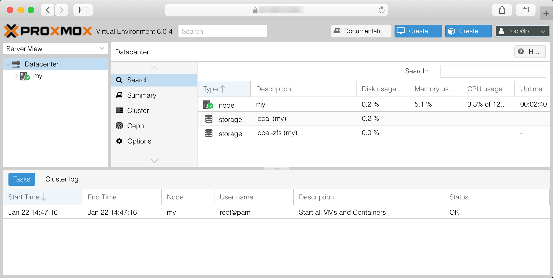 Proxmox Virtual Environment - or Proxmox VE is a server virtualization platform, based on Debian Linux. It allows the deployment of management of KVM-based virtual machines or LXC containers.
