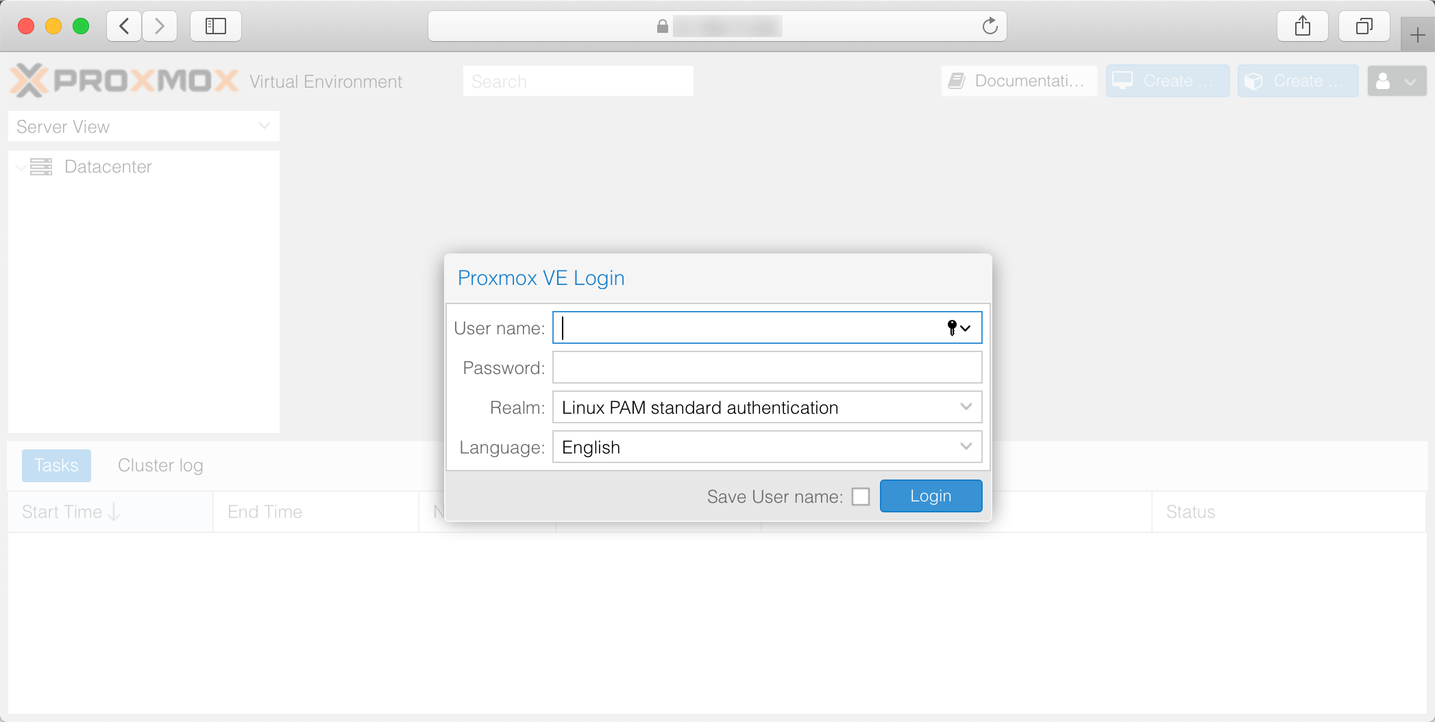 https://your_scaleway_dedibox:8006/. The login displays. Enter your credentials and click Login: