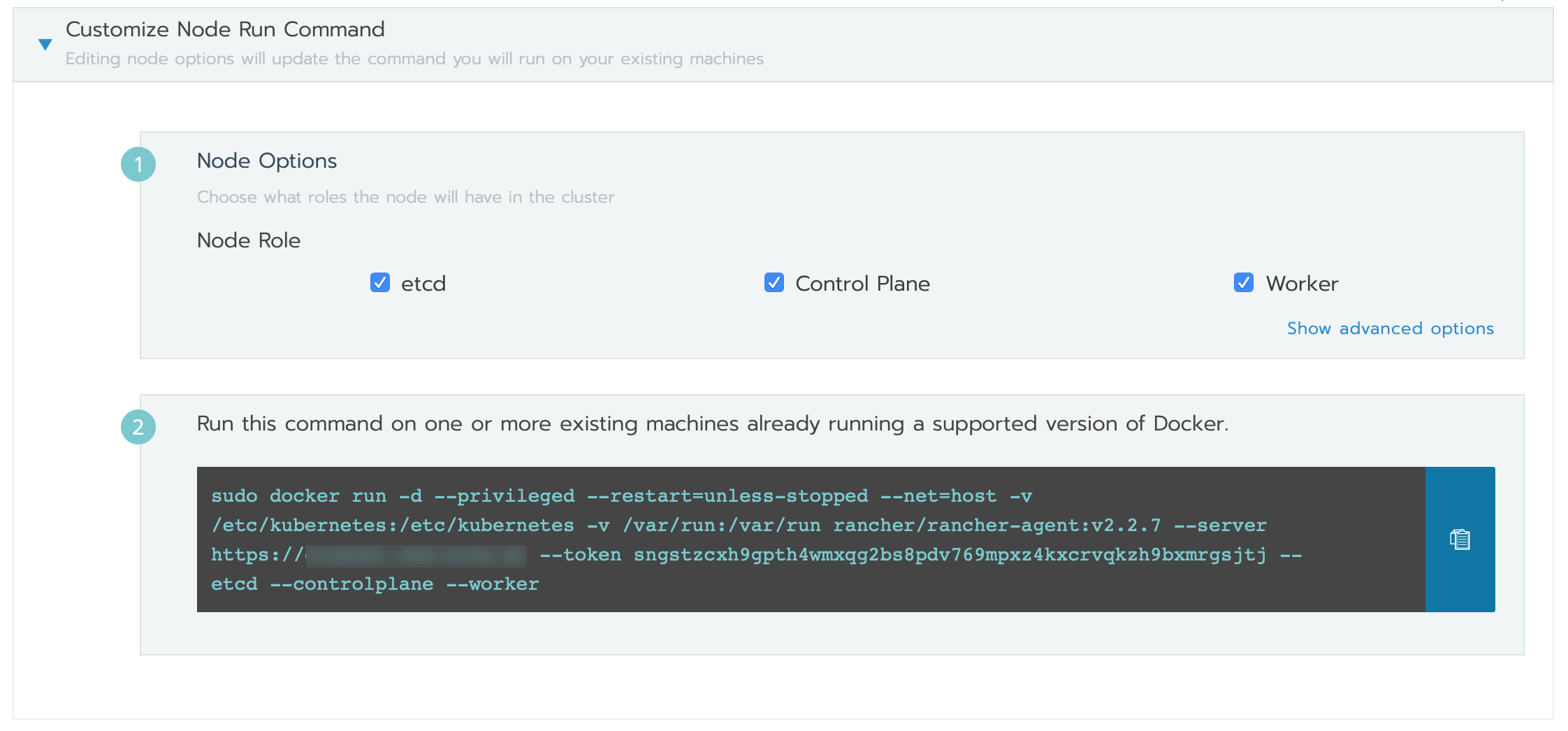 - Worker: Runs your containers/Pods and handles the workload. Once the roles are assigned, run the command shown on the page to install the necessary software on each Instance.