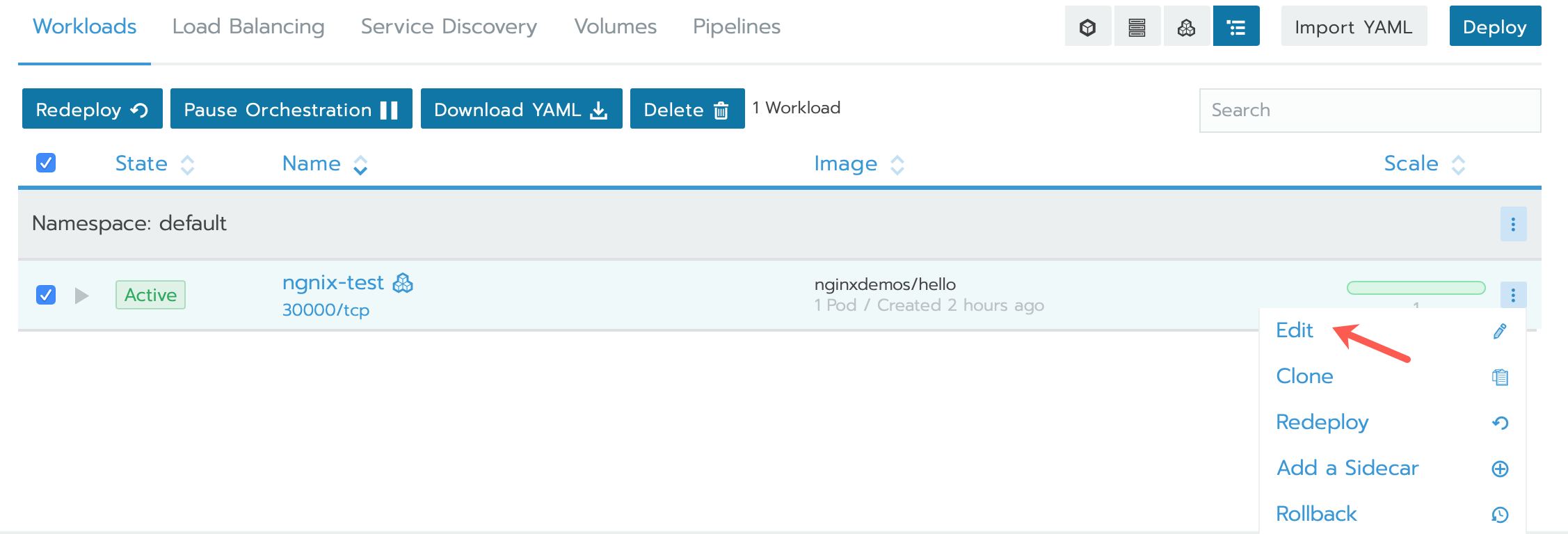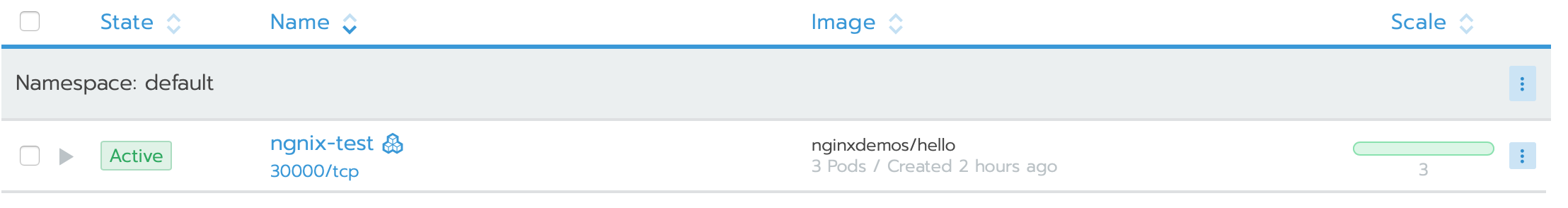 - Click Save. Rancher will update the Kubernetes deployment to create 3 replicas of the Pod.