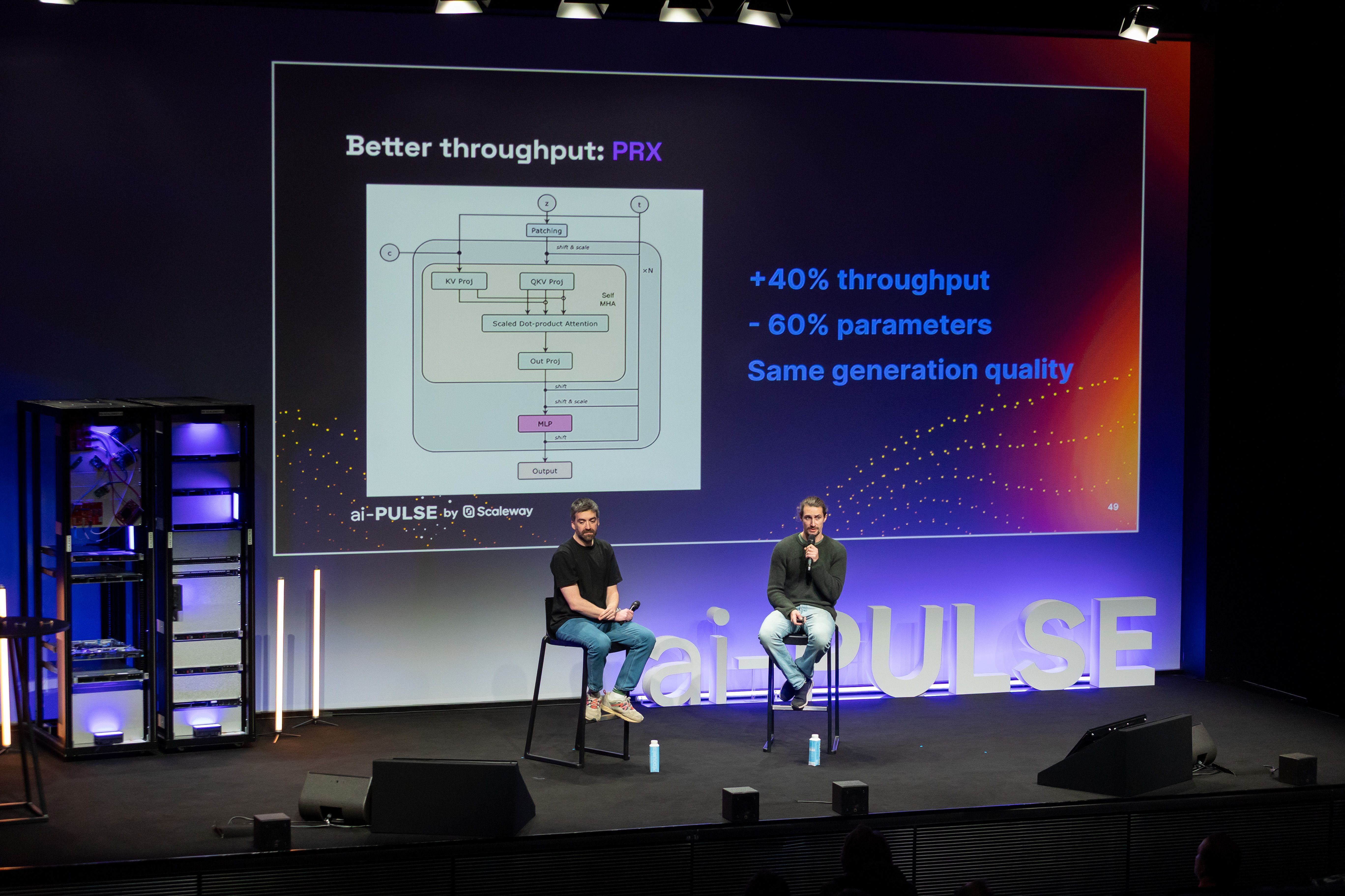 A key acceleration came from rethinking data rather than brute force. By recaptioning images with far more detailed prompts using vision-language models, PRX learns disentangled concepts faster and avoids the usual pre-training and fine-tuning trade-offs. Combined with architectural choices that made the model significantly lighter and faster, this approach enabled Photoroom to reach high-quality image generation orders of magnitude sooner than with its previous models. This turned openness and iteration speed into core advantages. (▶️ Watch session in full)