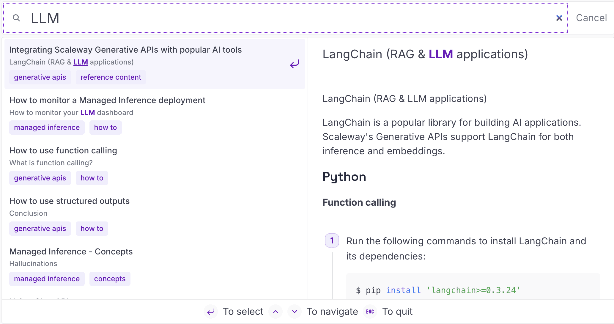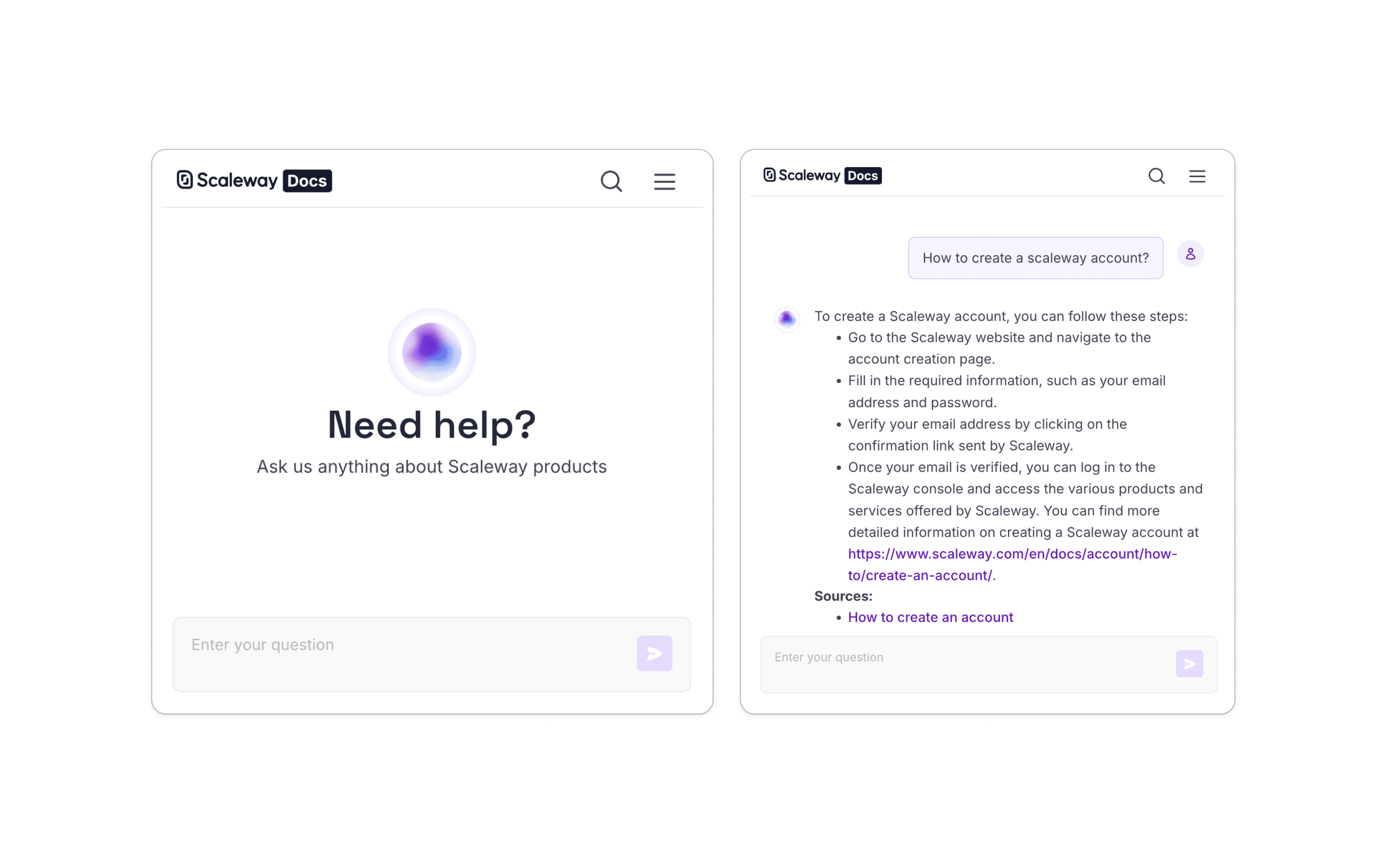 Back in October, we integrated an external AI-powered chatbot into our documentation website. While it was a valuable experiment, we’ve since decommissioned it to make room for something better: our own custom AI chat interface built specifically for the Scaleway Docs.