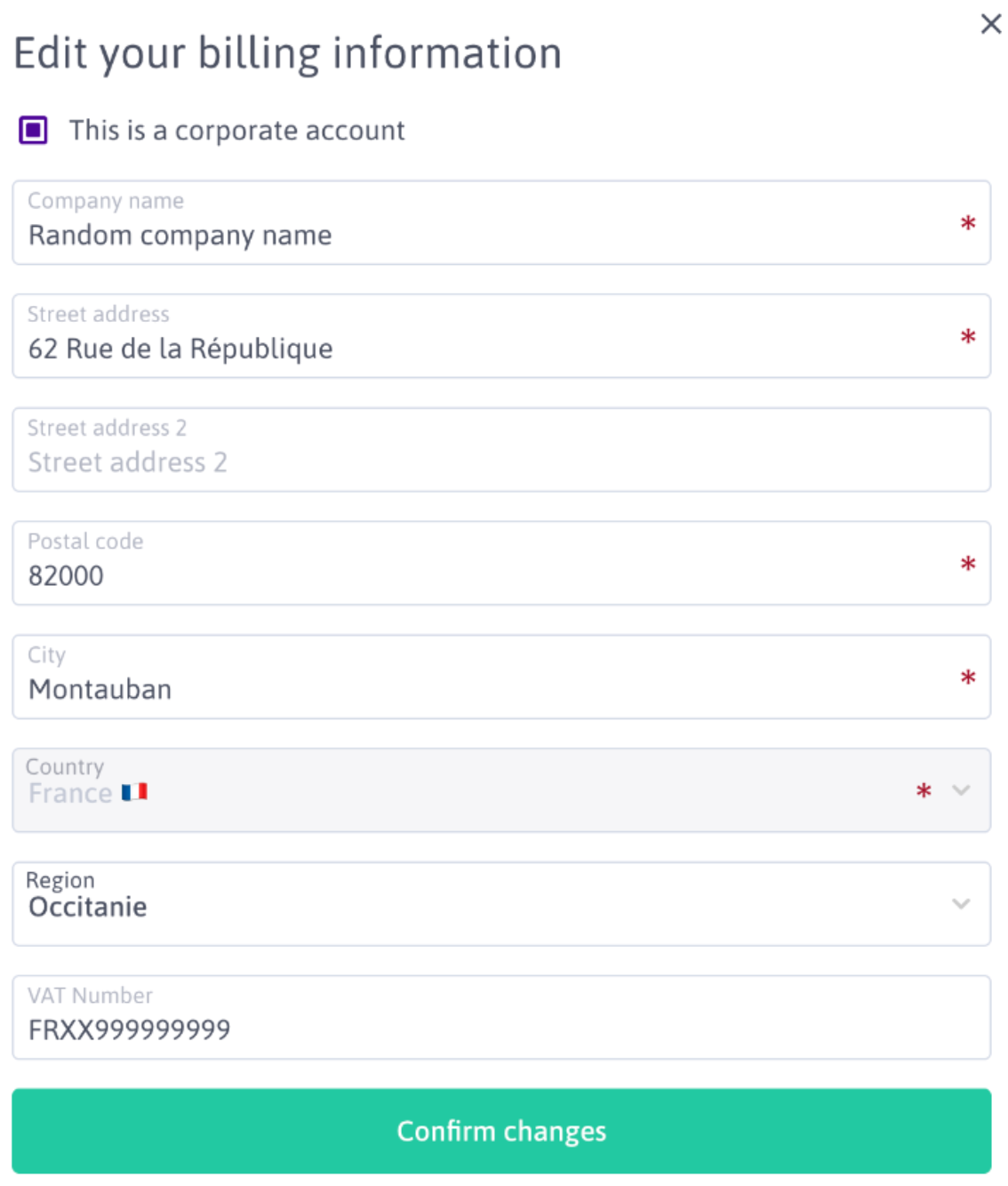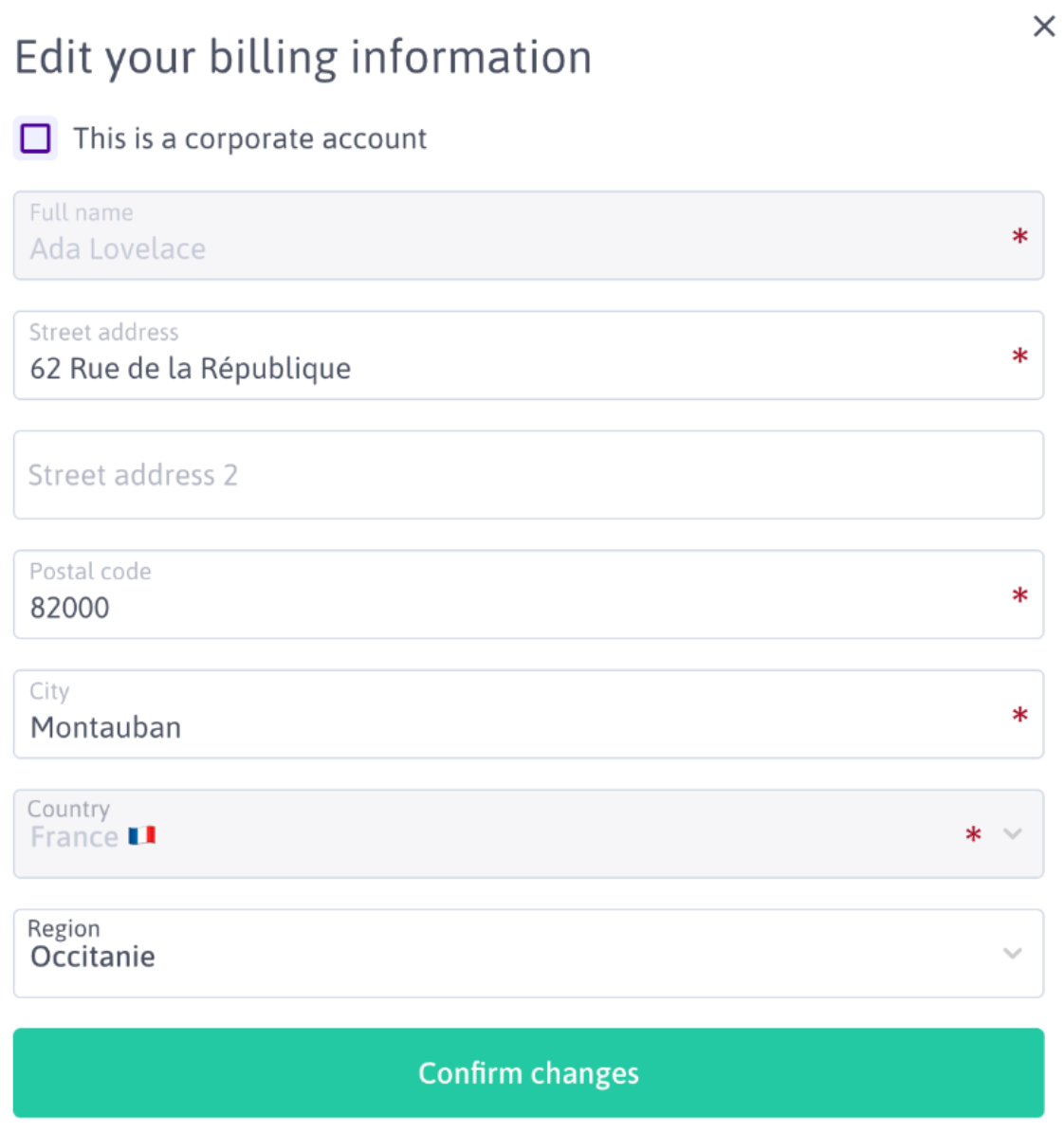 - Click Confirm changes to permanently convert your account from personal to corporate.