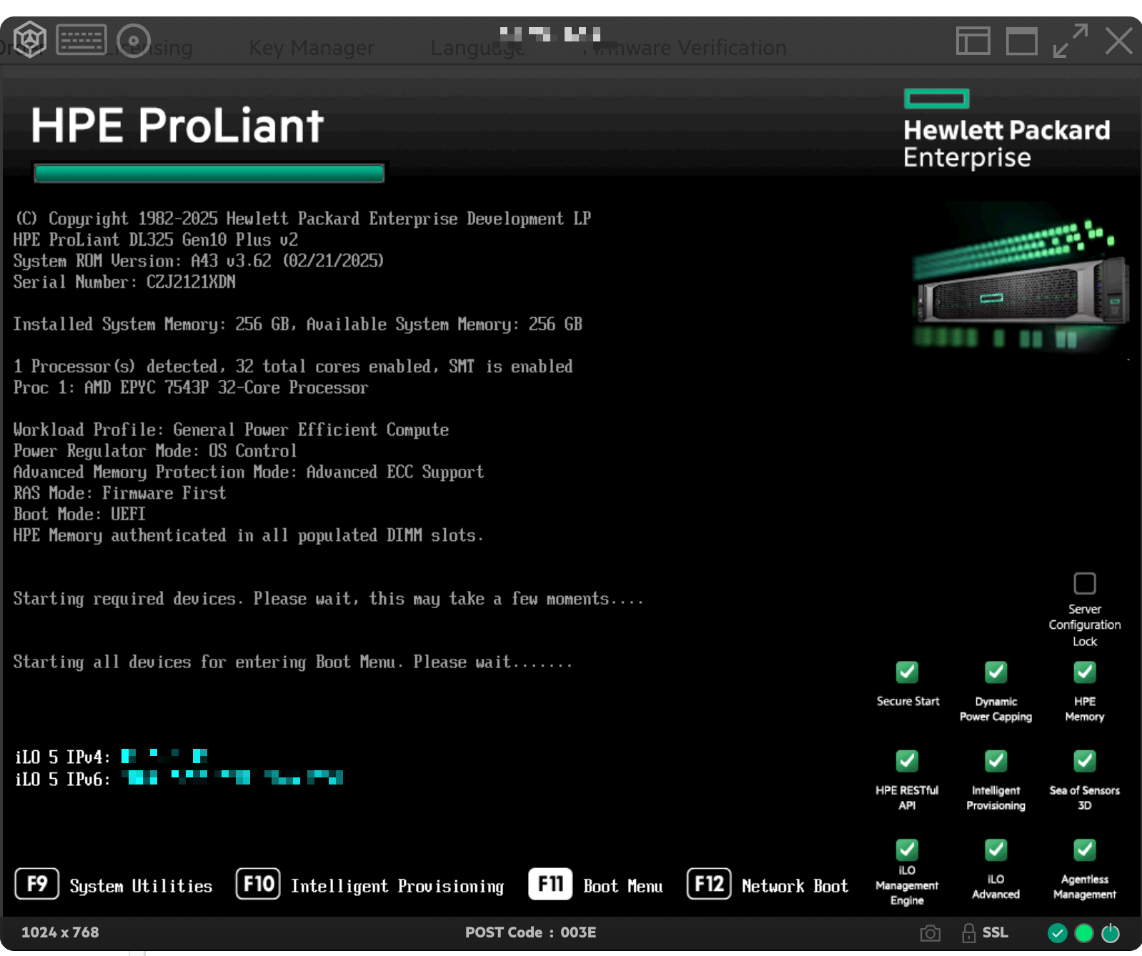- A Dedibox server with a KVM-over-IP device: HP iLO 5 (integrated lights-out)