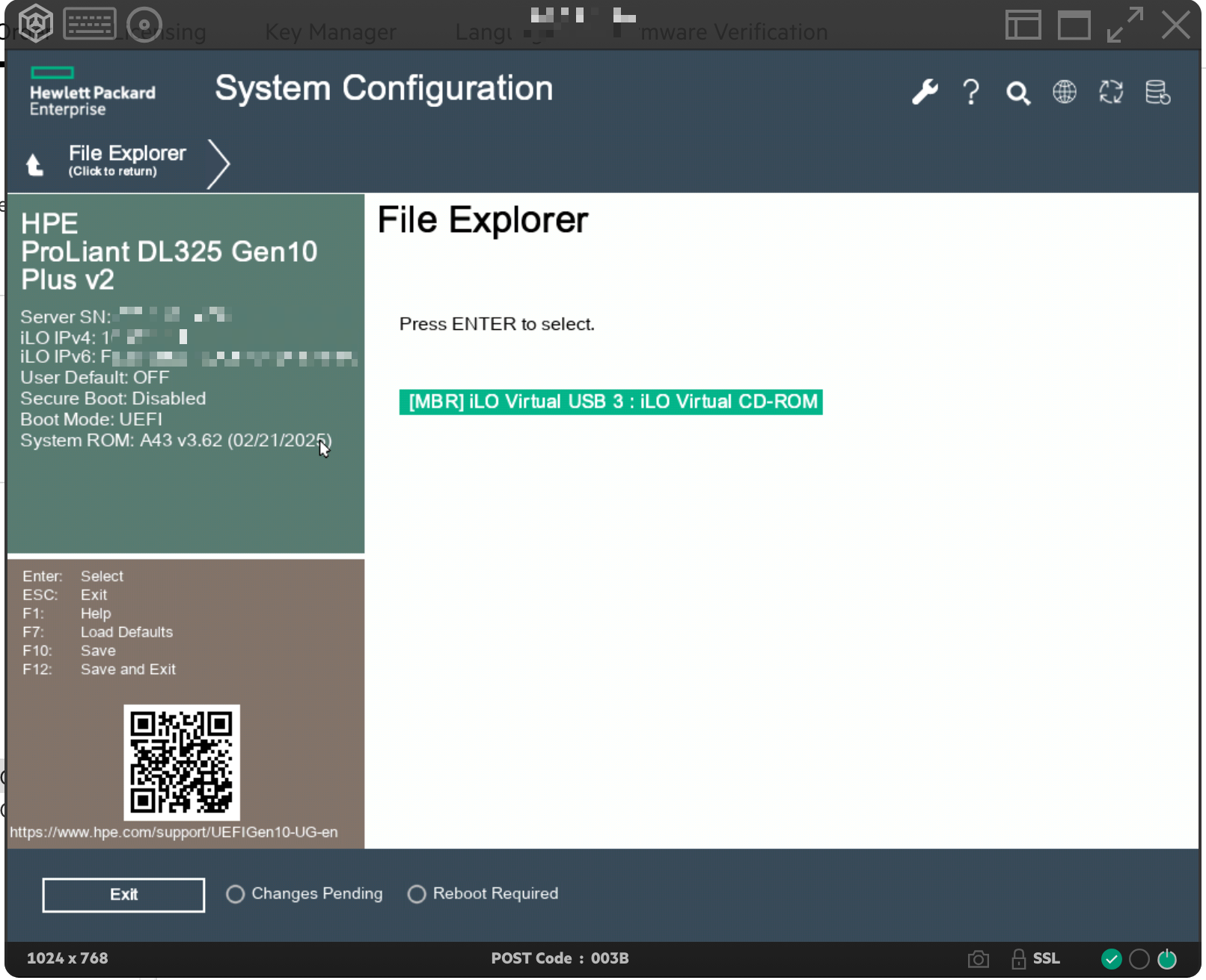 - Select [MBR] iLO Virtual USB 3 : iLO Virtual CD-ROM.