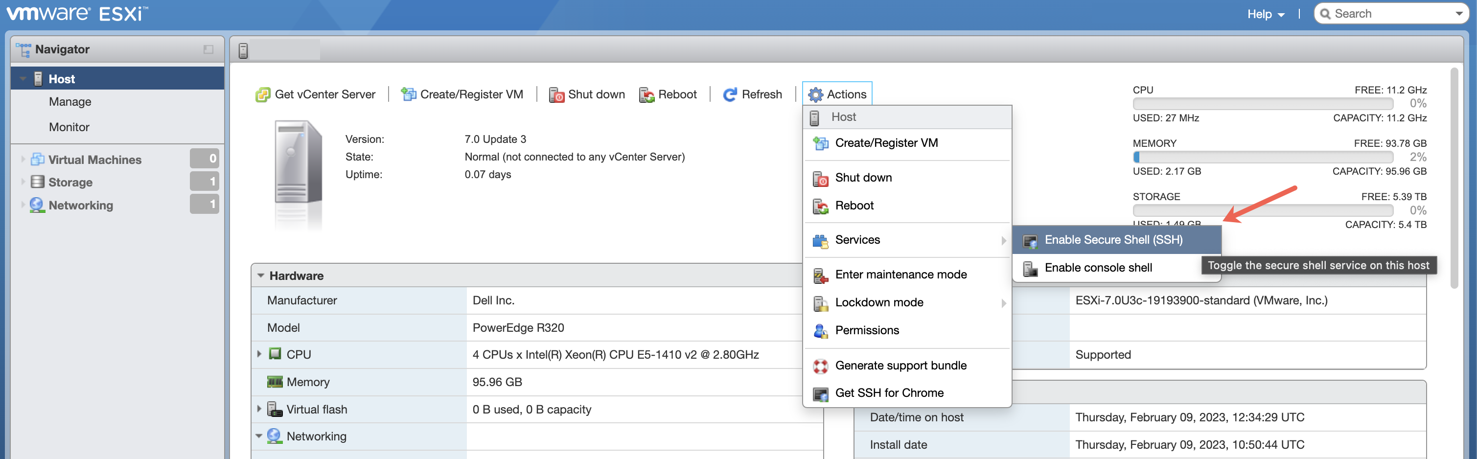 Enabling SSH on ESXi