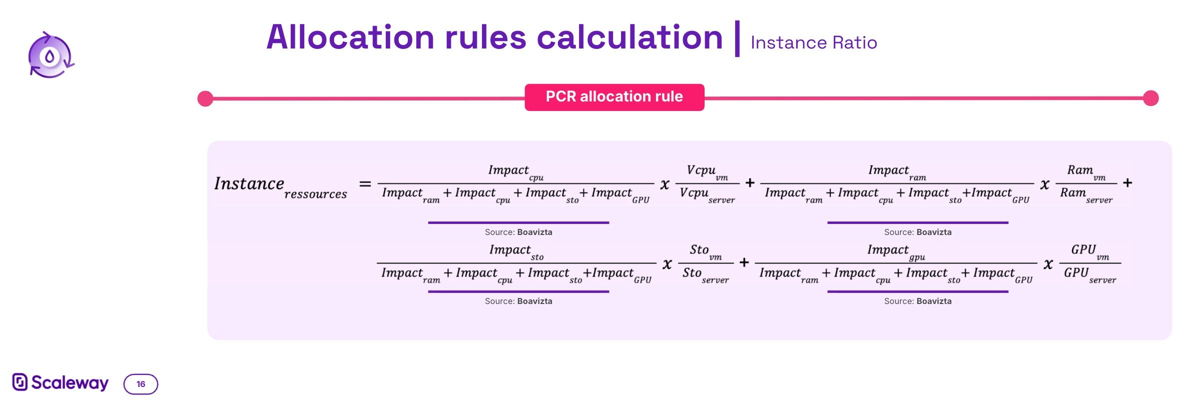 - Distribution of the manufacturing impact according to the resources consumed by the Instance (vCPU, RAM, storage).