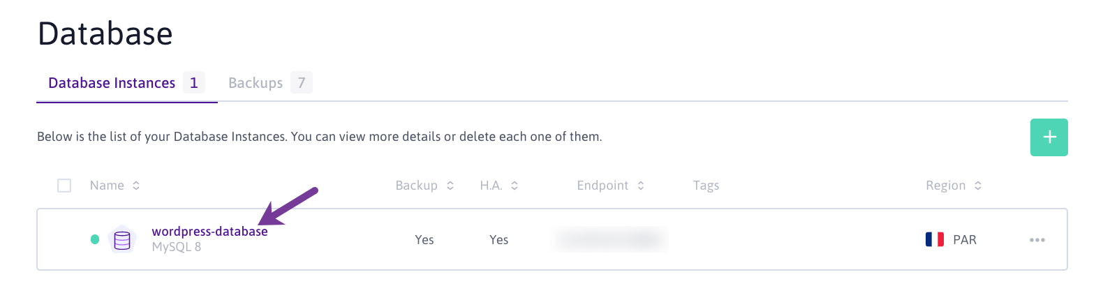 - Go to the Database section of your Scaleway console and choose your Database Instance from the list: