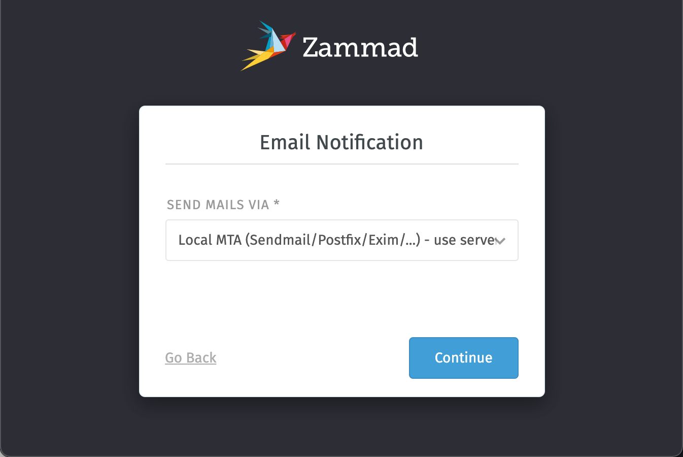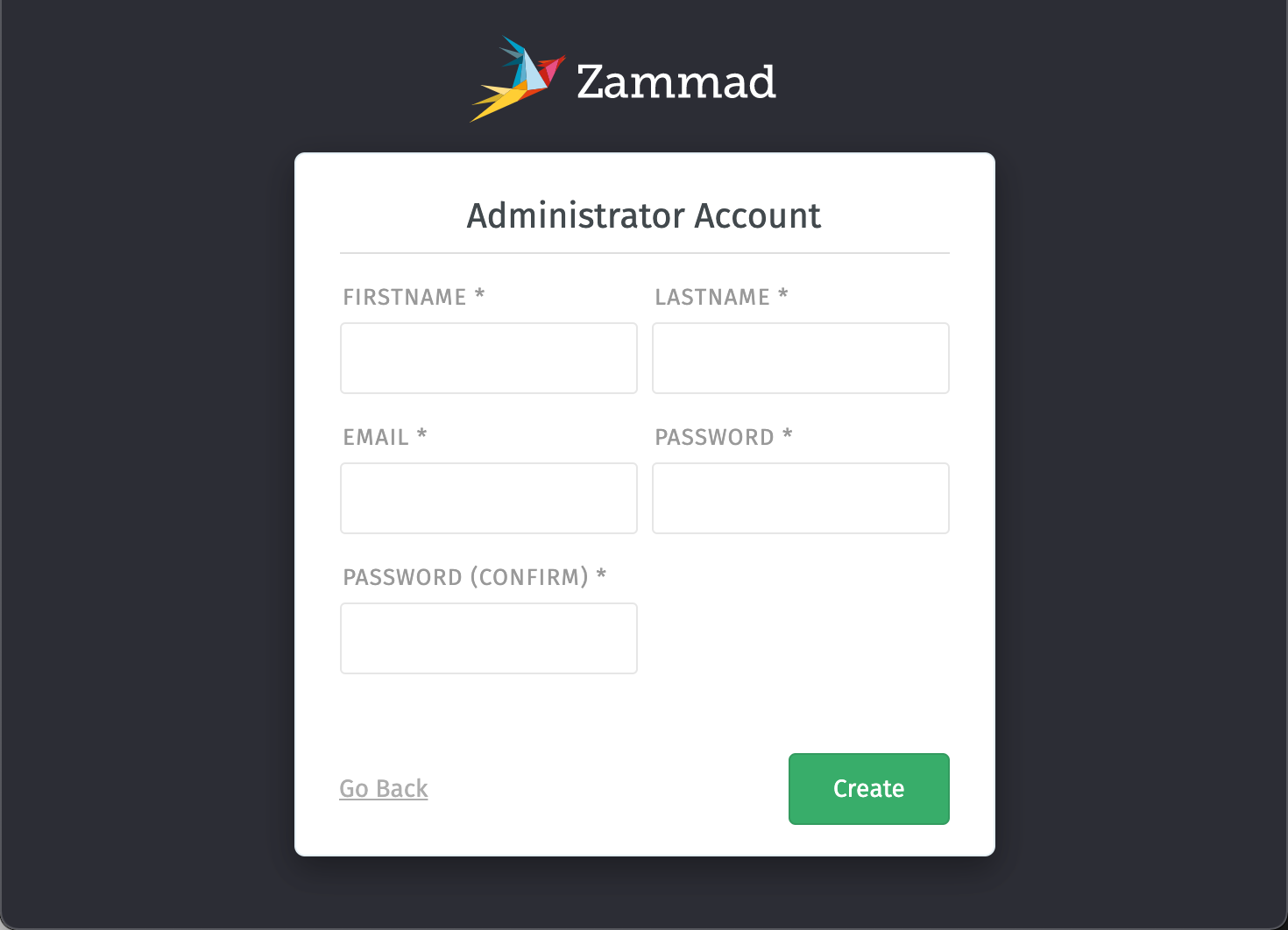 - Open a web browser and point it to your Zammad installation (in our tutorial: