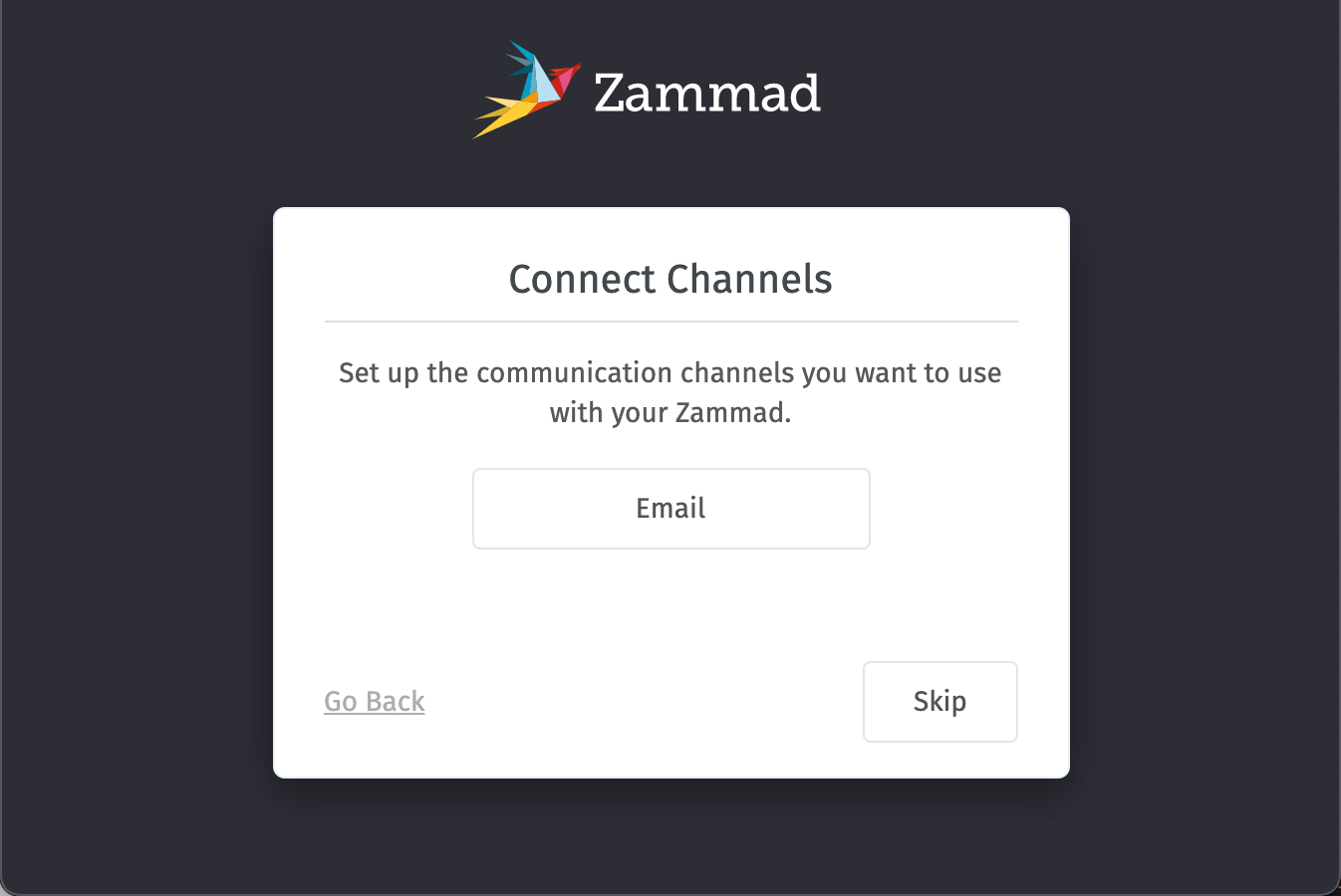 https://zammad.example.com). - The interactive setup wizard displays. Click Setup new system to start the configuration of the tool.
