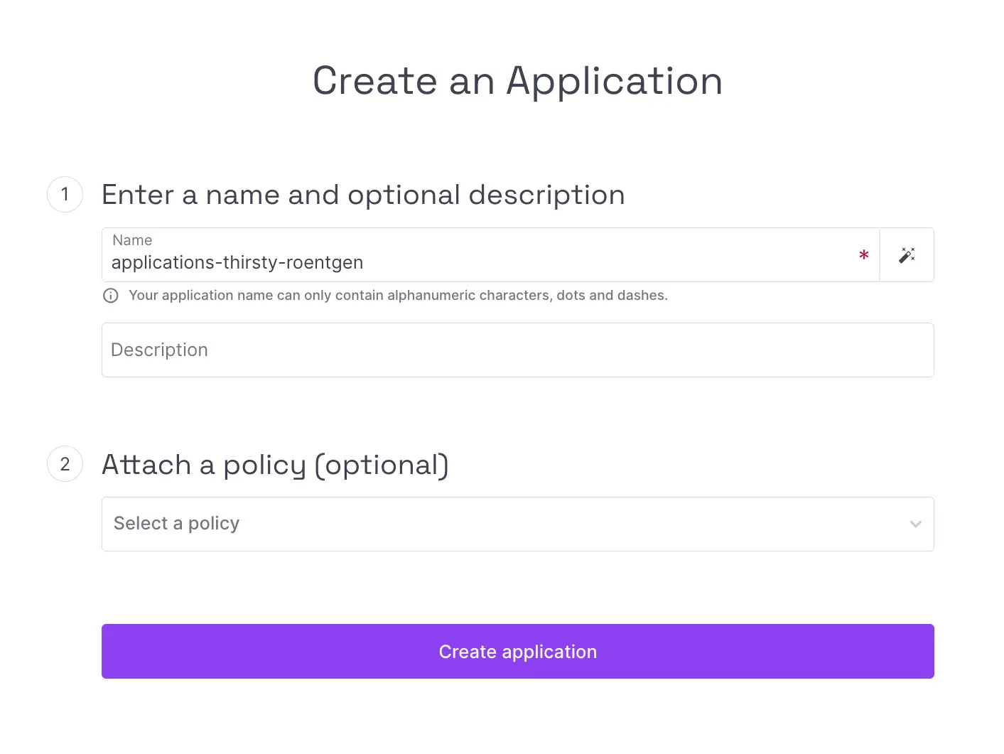 - Enter a name for the application, or use the auto-generated name suggested for you,