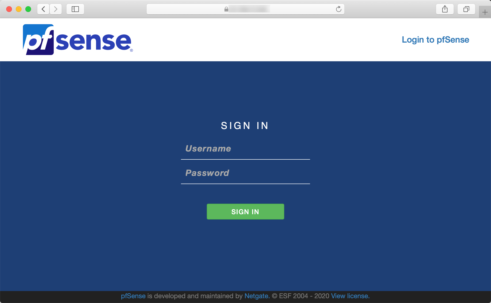https://<server_public_ip>. The pfSense web interface displays. Log in using the user admin and the password pfsense: