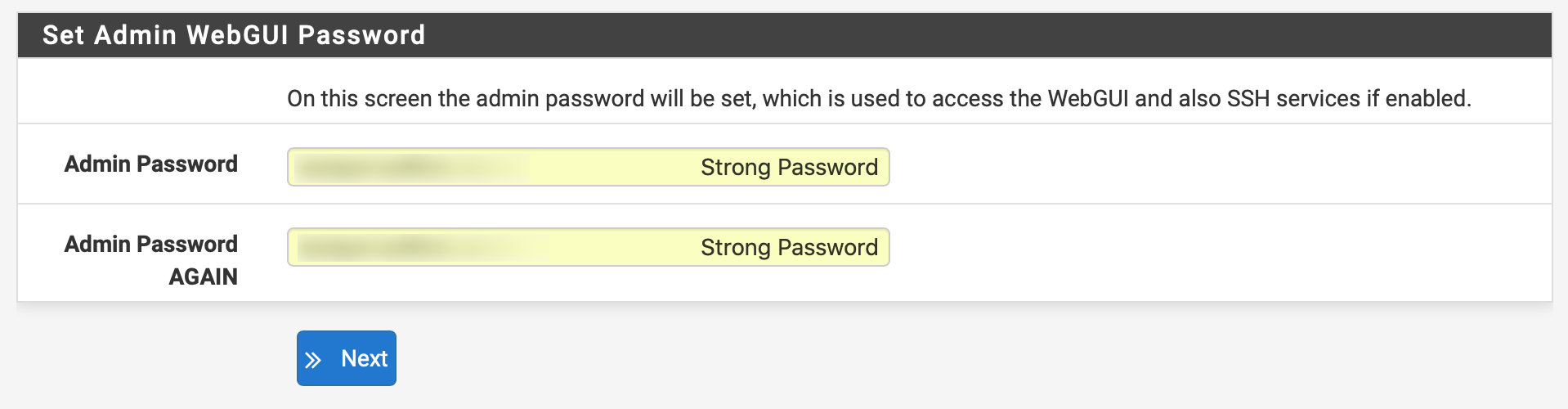 Set a strong and secure password, confirm it and click Next.