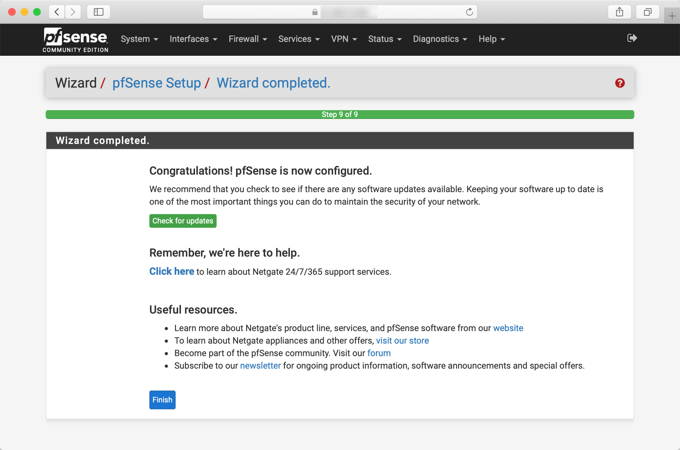 Setup is now complete. Click Finish to exit the wizard and start configuring rules.