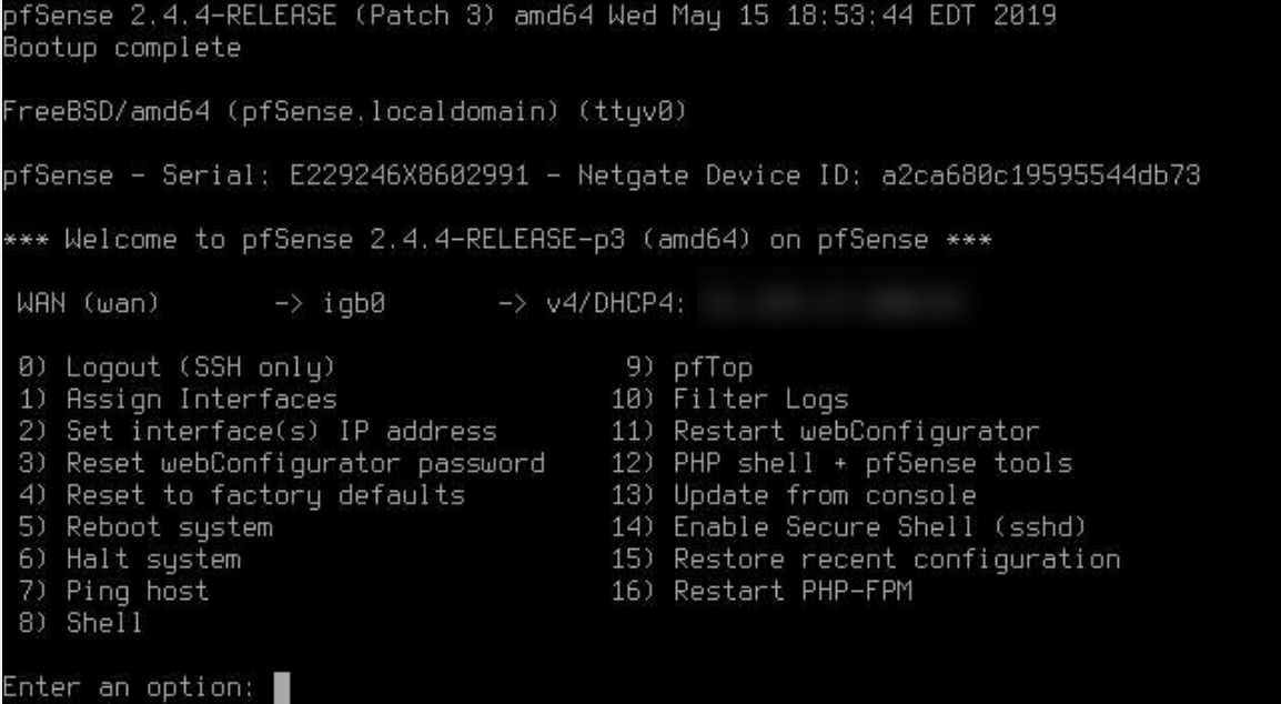 nand confirm by pressing Enter.Enter the WAN interface name or 'a' for auto-detection (igb0 igb1 or a):Enter the name of the first interface (in this case